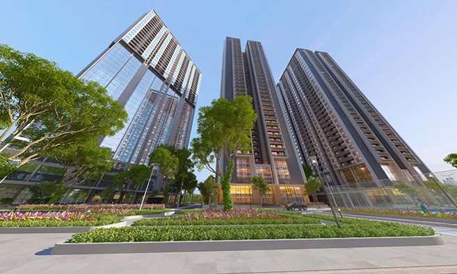 - Phía Đông: Giáp công viên cây xanh và bể bơi ngoài trời, hướng view tổ hợp nhà ở, văn phòng.